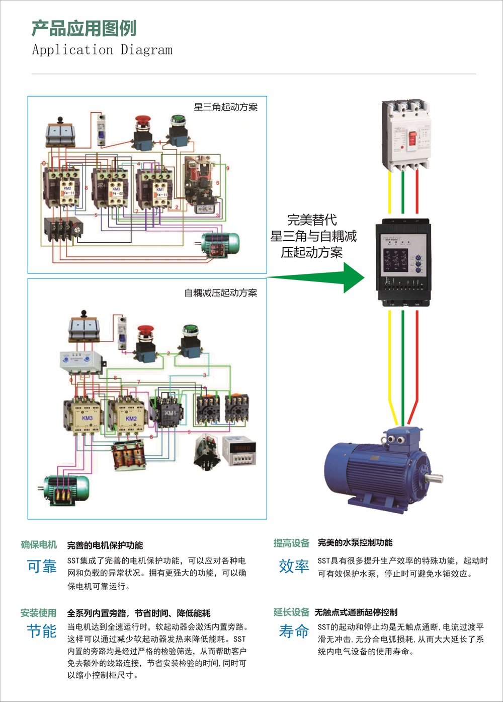 SST全系列软起动器已内置旁路继电器,用户不需要另外在外部增加旁路接触器;